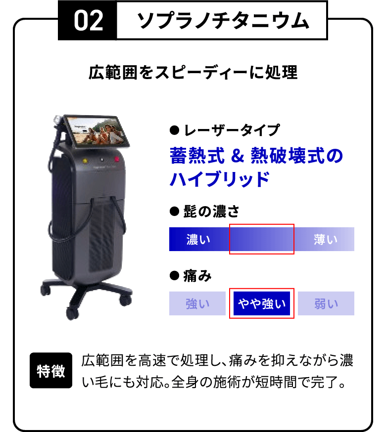 一人ひとりの毛質変化に合わせて、最大限の照射レベルで施術していくため、脱毛効果をしっかり実感することができます。