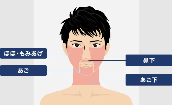 4ヶ所 ほほ・もみあげ、鼻下、あご、あご下